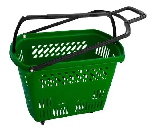 CESTA PLÁSTICA COM ALÇA E RODINHA 30 LITROS 55X35X38 VERDE ESCURO