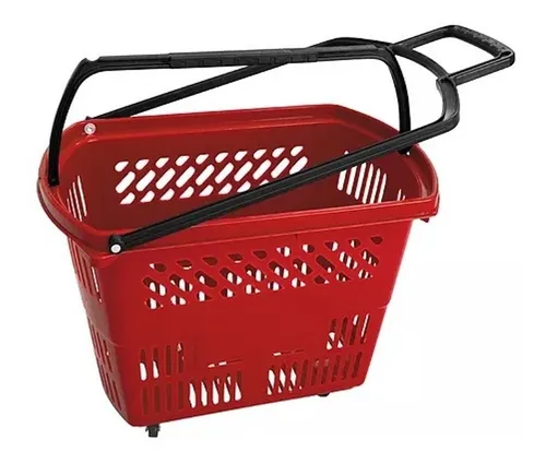 CESTA PLÁSTICA COM ALÇA E RODINHA 30 LITROS 55X35X38 VERMELHO