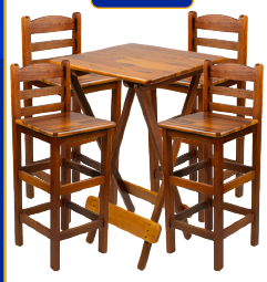 CONJUNTO BISTRÔ DOBR. QUADRADO 60X60 MADEIRA PAINEL TECA LISO VERNIZ PU RÚSTICO (50% LIXA) PRETO C/2 BANQUETÃO ENCOSTO RETO