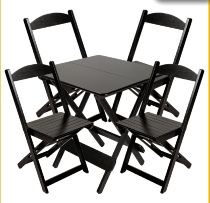 CONJUNTO MESA DOBR. 70X70 MADEIRA PAINEL PINUS LISO VERNIZ PU RÚSTICO (50% LIXA) MEL C/4 CADEIRAS DOBRAVEL RETRO RETO