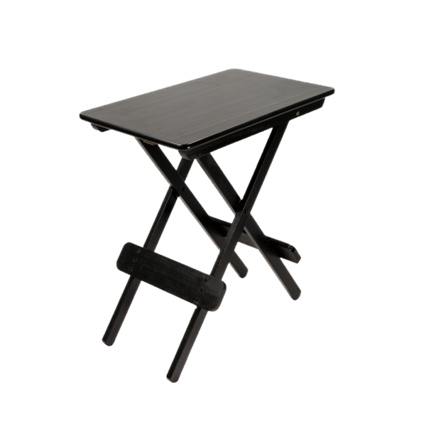 MESA DOBRÁVEL 43X70 TAMPO INTEIRO MADEIRA PAINEL TECA LISO VERNIZ – PU RÚSTICO (50% LIXA) PRETO
