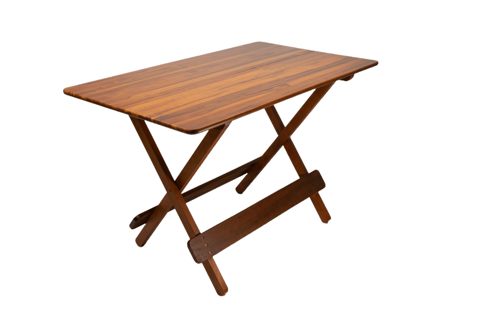 MESA DOBRÁVEL 70X120 TAMPO 2 PARTES MADEIRA PAINEL TECA LISO VERNIZ – PU RÚSTICO (50% LIXA) MEL