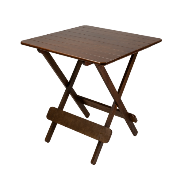 MESA DOBRÁVEL 70X70 TAMPO 2 PARTES MADEIRA MISTA RIPADA VERNIZ – PU RÚSTICO (50% LIXA) IMBUIA