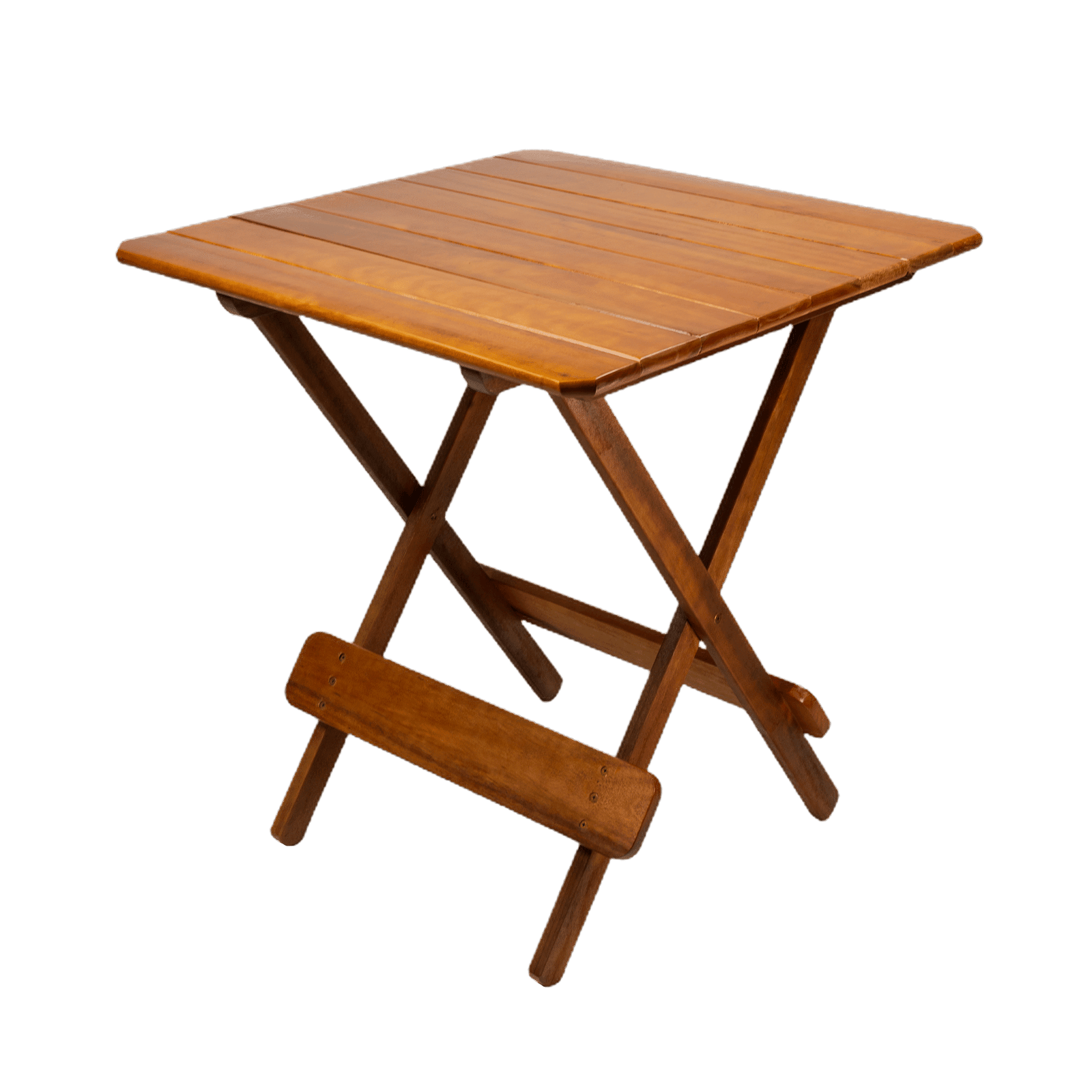 MESA DOBRÁVEL 70X70 TAMPO 2 PARTES MADEIRA MISTA RIPADA VERNIZ – PU RÚSTICO (50% LIXA) MEL