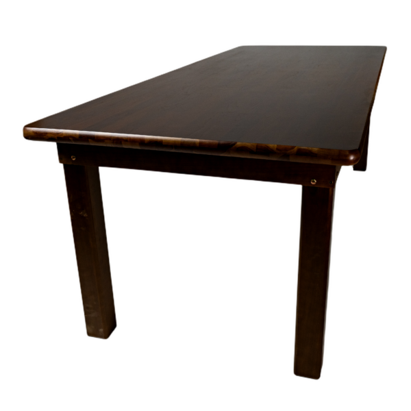 MESA MADEIRA FIXA 100X245 4 PÉS (PÉ 9X9) C/BORDA TAMPO PAINEL TECA LISO VERNIZ – PU LISO (100% LIXA) IMBUIA
