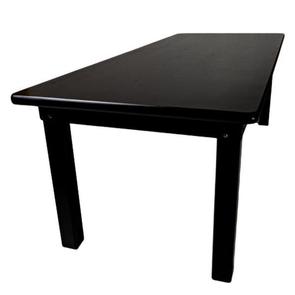 MESA MADEIRA FIXA 100X245 4 PÉS (PÉ 9X9) C/BORDA TAMPO PAINEL TECA LISO VERNIZ – PU LISO (100% LIXA) PRETO