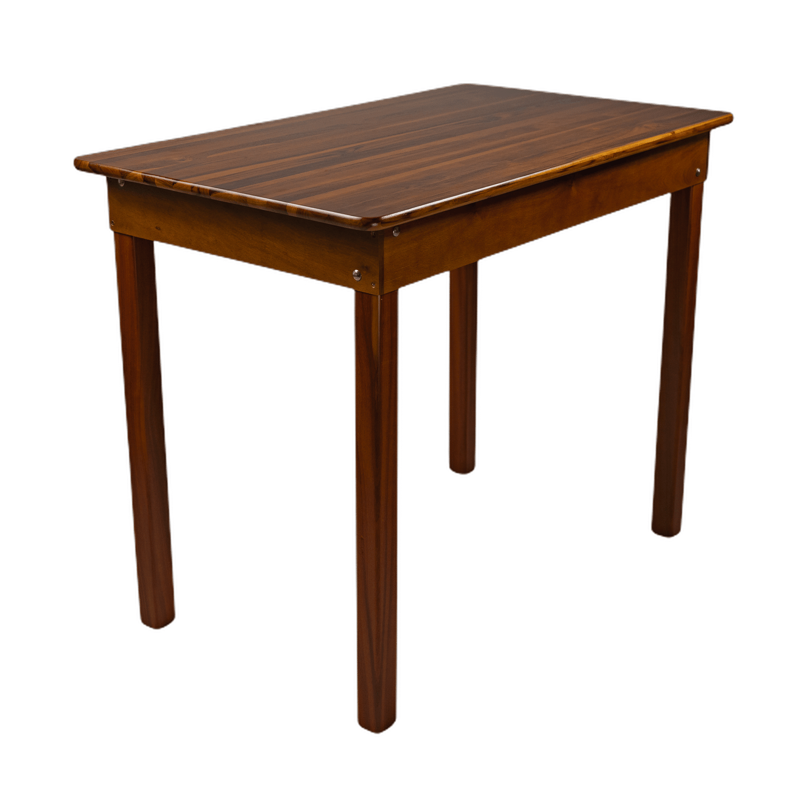 MESA MADEIRA FIXA 60×100 4 PÉS (PÉ 5X5) TAMPO PAINEL TECA LISO VERNIZ – PU RÚSTICO (50% LIXA) MEL