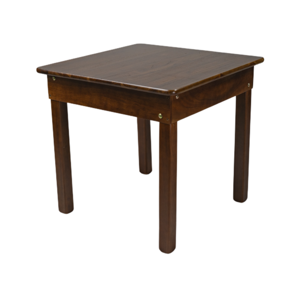 MESA MADEIRA FIXA 60X60 INFANTIL 58CM ALT.4 PÉS TAMPO PAINEL TECA LISO VERNIZ – PU RÚSTICO (50% LIXA) IMBUIA