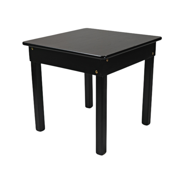 MESA MADEIRA FIXA 60X60 INFANTIL 58CM ALT.4 PÉS TAMPO PAINEL TECA LISO VERNIZ – PU RÚSTICO (50% LIXA) PRETO
