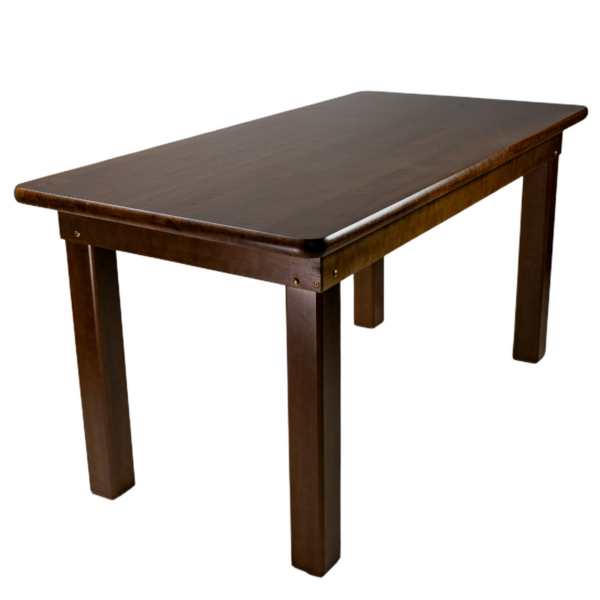 MESA MADEIRA FIXA 80×160 4 PÉS (PÉ 9X9) C/BORDA TAMPO PAINEL TECA LISO VERNIZ – PU LISO (100% LIXA) IMBUIA