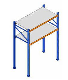PORTA PALLET NO PERFIL ENRIJECIDO 3000X2000X900MM C/2 NÍVEIS P/1200 KG C/PLANO METÁLICO AZUL+LARANJA